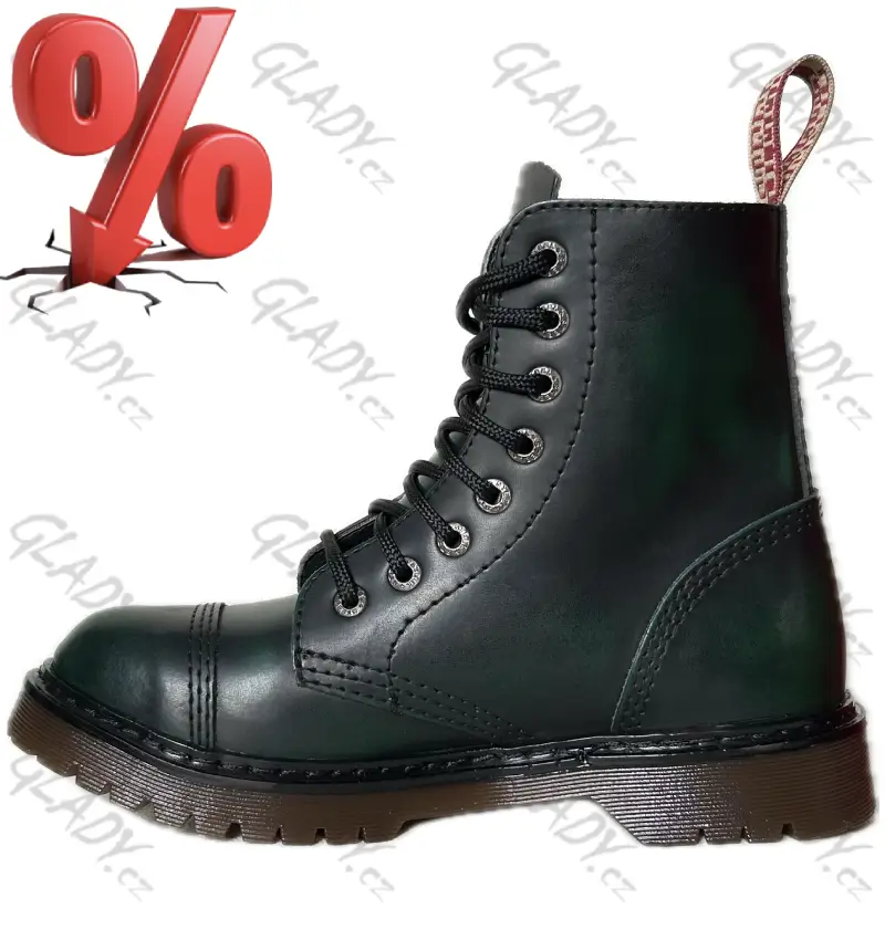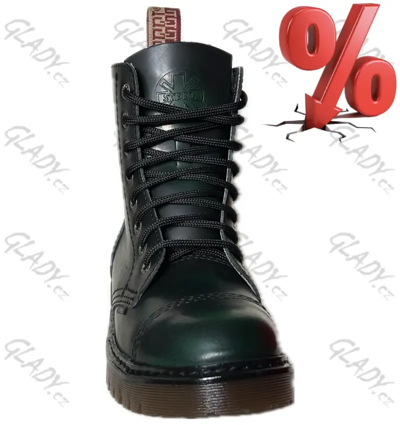 Úvod »Glady STEEL»STEEL bez oceli - 8 DÍREK » AKCE: STEEL BLACK GREEN KAUČUK b. oc., 8 dírek, VEL. 39 = SLEVA 200,-