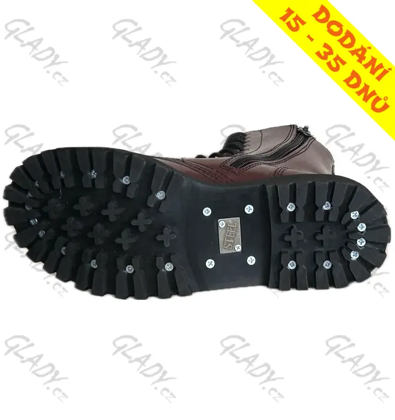 - podrážka z klasické tvrzené gumy s traktorovým vzorem, ozdobnými šrouby a plíškem s nápisem Steel